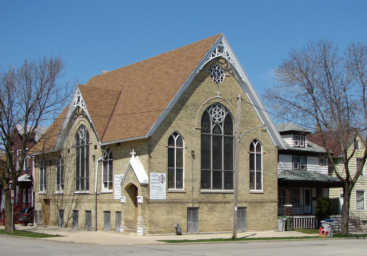 The congregation changed its name to Ebenezer Lutheran in 1932, reflecting the increasing assimilation of the older members and their children as well as the addition of non-Norwegian members. Around 1950, the congregation moved to the Colonial Revival style church at 43rd Street and Oklahoma Avenue, a bit more than three miles to the southwest. Since the late 1950s, the Gothic Revival church at 7th and Madison has been home to a Spanish-language Baptist congregation. First appearing in city directories in 1955, at 6th and Washington Streets, Iglesia Evangelica Bautista appears to be Milwaukee’s oldest Spanish-language Protestant church.