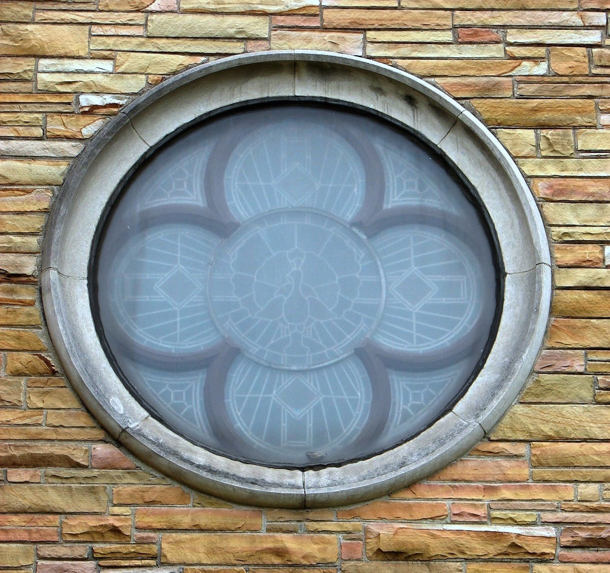 Resurrection Lutheran is one of the most modern, or at least the least Gothic, of Milwaukee’s postwar Gothic Revival churches. It has a few Gothic Revival features, such as the pointed-arch window in the tower and the Hertfordshire spike, but the doorways and nave windows are rectangular, without pointed arches. The covered entrance spanning the driveway is a modern feature seen on only one other Gothic Revival church in Milwaukee, also built in the mid-1950s (and also designed by Steffen and Kemp). The Gothic Revival was nearing the end of its long run by this time. There is one other Milwaukee church in the style that dates to 1954 and just six that were built later, all from 1956 to 1958. Steffen and Kemp designed four of these last eight Gothic Revival churches. Most of the 1950s Gothic Revivals are relatively small churches like Resurrection Lutheran, with seating for about 300 worshippers.